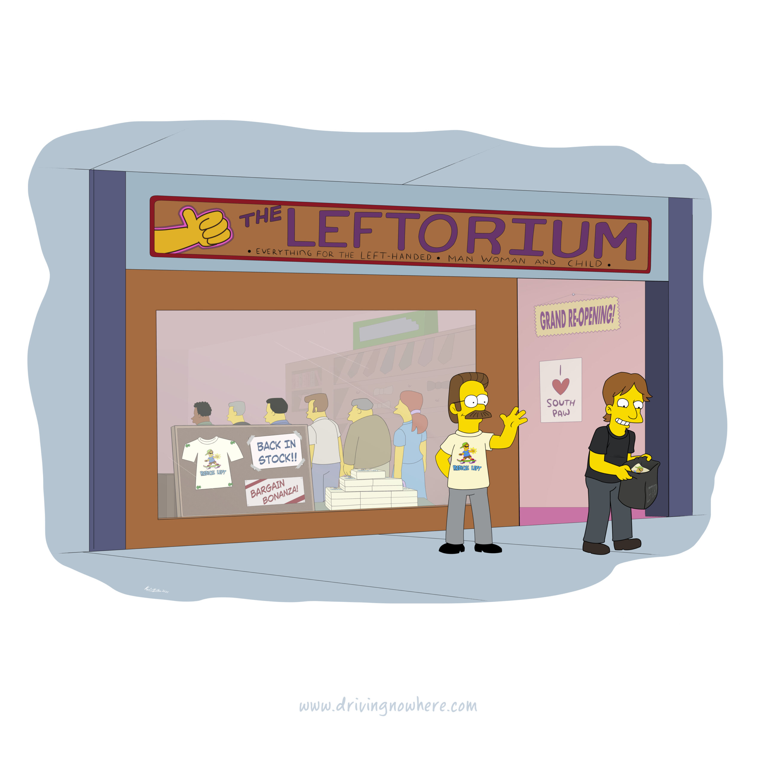I’d like to make this shirt for real, but I’m a little afraid of getting sued by Disney who owns The Simpsons now for copyright infringement… or by the guy who started this whole hate campaign for left handed people and coined the term. Not sure if parody law will save me. I don’t have a good legal team. I don’t have a legal team.