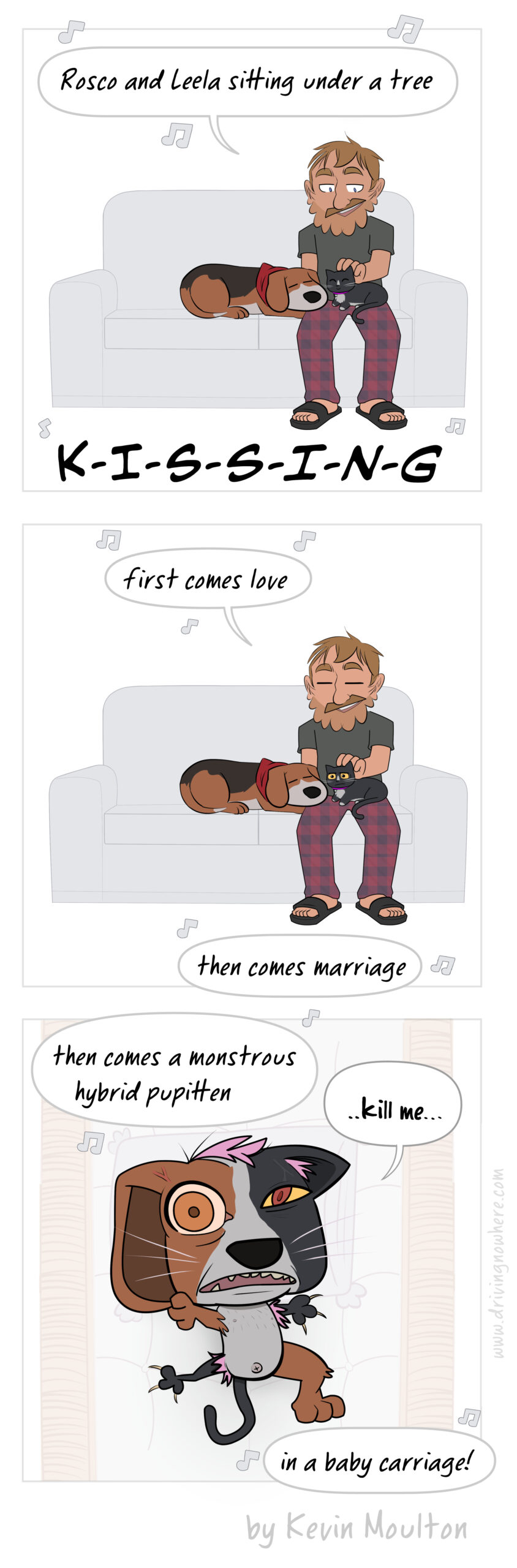 When I got Leela I knew it’d be difficult to avoid making cat comics. I fought the temptation valiantly, but I’ve been defeated by reality. Leela has a tendency to drool on me that I must share with the world: